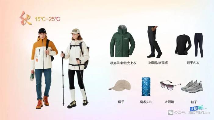上衣外层:穿上防风防水的冲锋衣,抵御秋风和秋雨。冲锋衣的可拆卸内胆设计非常实用,可以根据天气情况进行调整。