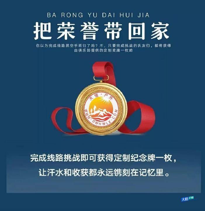 注:凡俱乐部队员任走其中三条,即可获得证书及+户外荣誉勋章及价值999户外用品大礼包一份