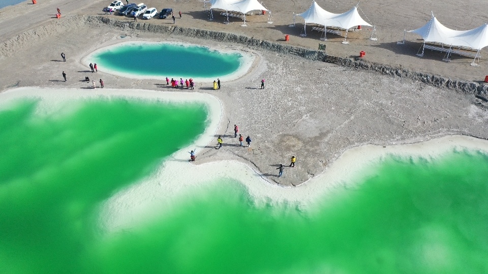 早上从大柴旦出发,来到【翡翠湖】(根据时间翡翠湖可能会调整为第三天下午游览,翡翠湖的日落是非常漂亮的),它原本是大柴旦化工厂盐湖采矿队采矿区。从上俯瞰,就如一颗颗精心加工好的上好翡翠、琥珀绿松石镶嵌在大地上,美的让人心动。