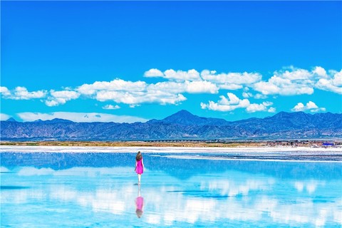 2、茶卡盐湖拍摄倒影以裙子为佳,颜色鲜艳,造型酷酷的样子,一顶风格的帽子也是加分项(切忌穿的臃肿,可里面穿好看修身裙子等,一个厚外套随身)。