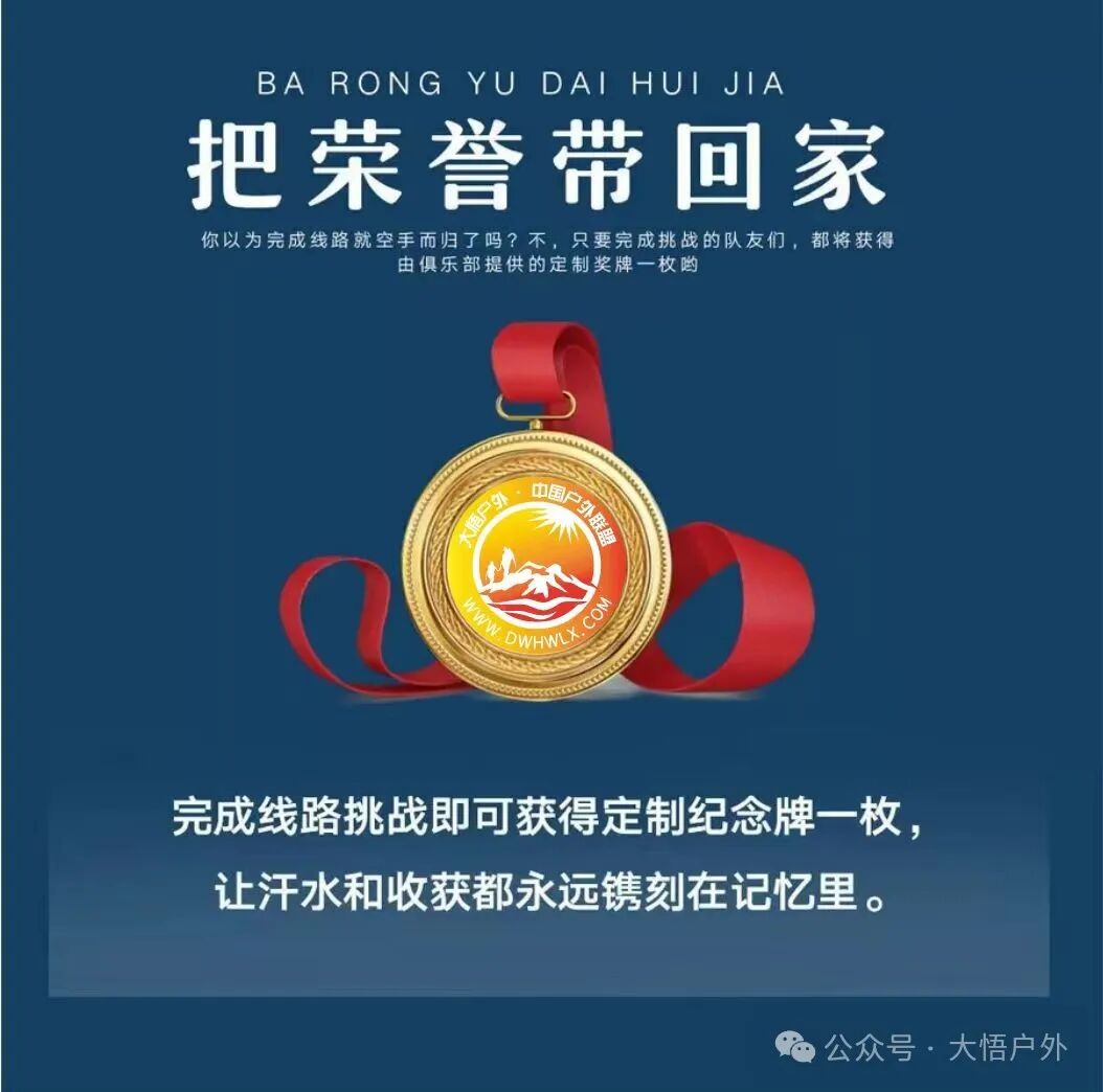 2、参加者需身体健康、无任何急、慢性病、无突发性等不适合剧烈运动的疾病、有团队协作精神、心理健康的健康人士。有过往病史及有不影响参加活动的小病患者想参加活动,报名前请咨询医生,报名时应提前告知领队,征求同意。